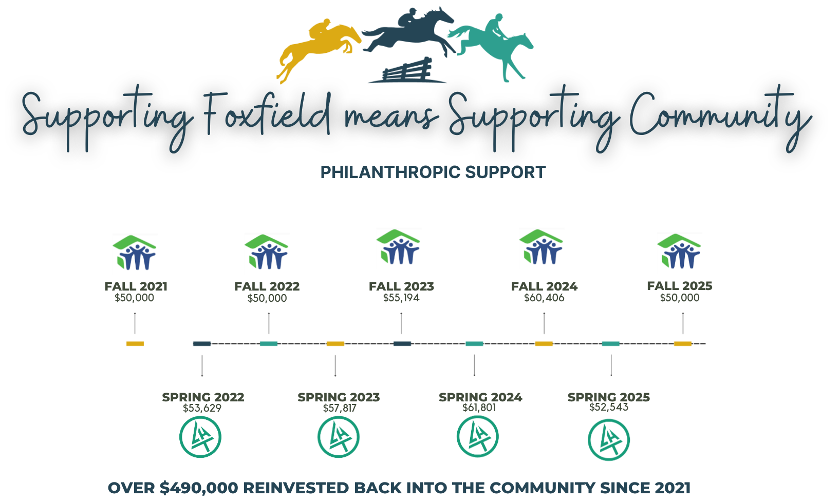 Foxfield has formed long-term partnerships with Habitat for Humanity of Greater Charlottesville (a social justice charity) and Camp Holiday Trails (a medical charity) to provide financial support, visibility, and community-focused programming. These efforts will further promote open-space preservation and create meaningful educational opportunities.